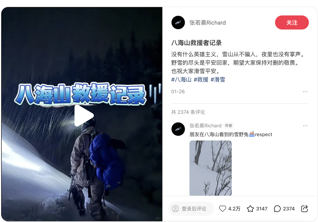暴雪夜深山逆行4小时救人,中国雪友获深企影石万元奖励